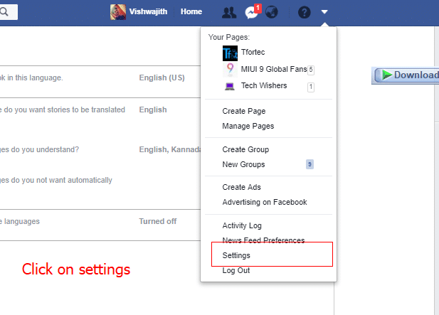 - Facebook language: This is like the main switch. This option enables the chosen language to apply for the entire facebook app like all the buttons, menus, etc.