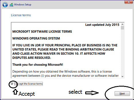- Here you will be agreeing to the terms and conditions from Microsoft. Read if you have time else select and click NEXT.