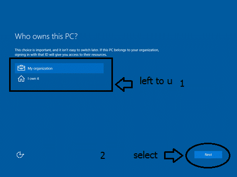 - Now the question is “Who Owns the PC?” Select and click NEXT.