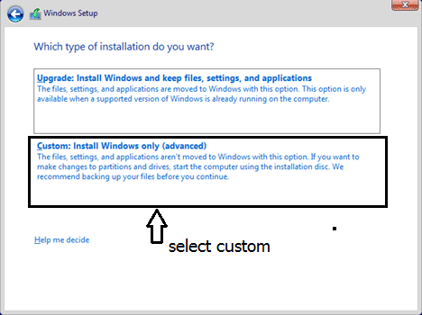 - In this step, it asks for the installation type. click CUSTOM INSTALLATION METHOD