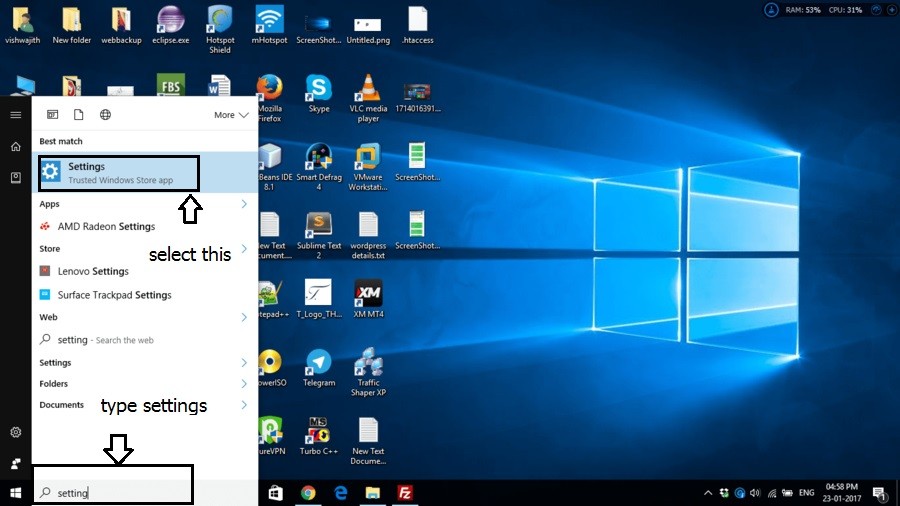 - You can directly enter Settings by typing “Settings” in the search bar and click the first settings option. so that you can reformat windows 10.
